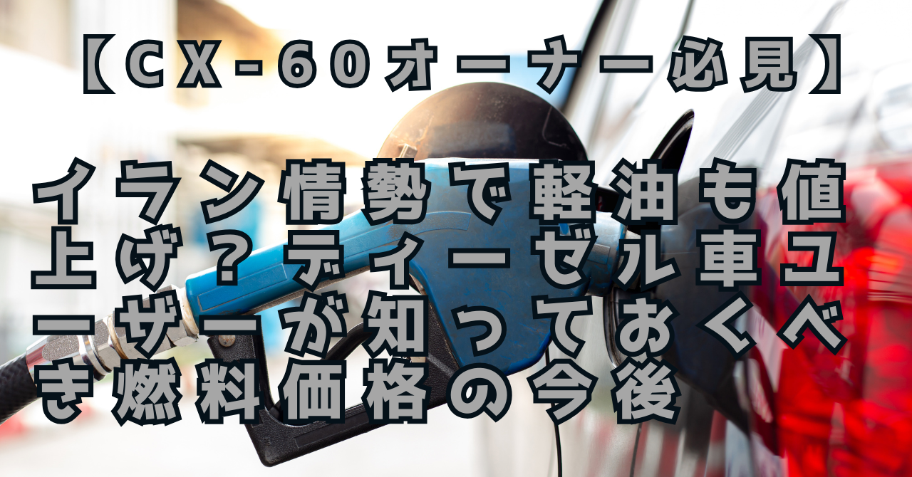 今回のイラン情勢の影響で、どれくらい軽油価格が上がるのか?そもそも軽油はガソリンと同じように値上がりするのか?CX-60オーナーとして気になったので、調べてまとめてみました。