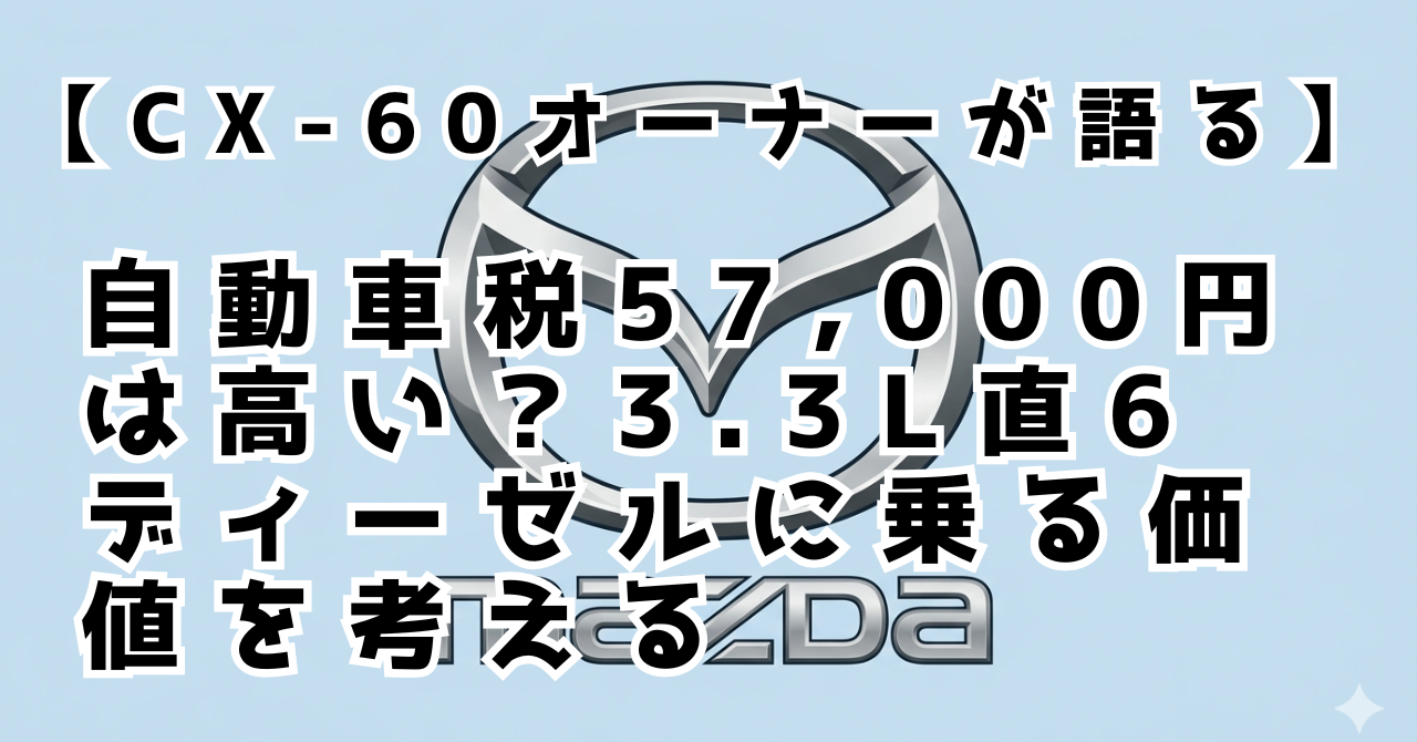 今回は、CX-60オーナーとして、自動車税57,000円の内訳と、それでもこのクルマに乗る価値があるのかについて、本音で語ります。