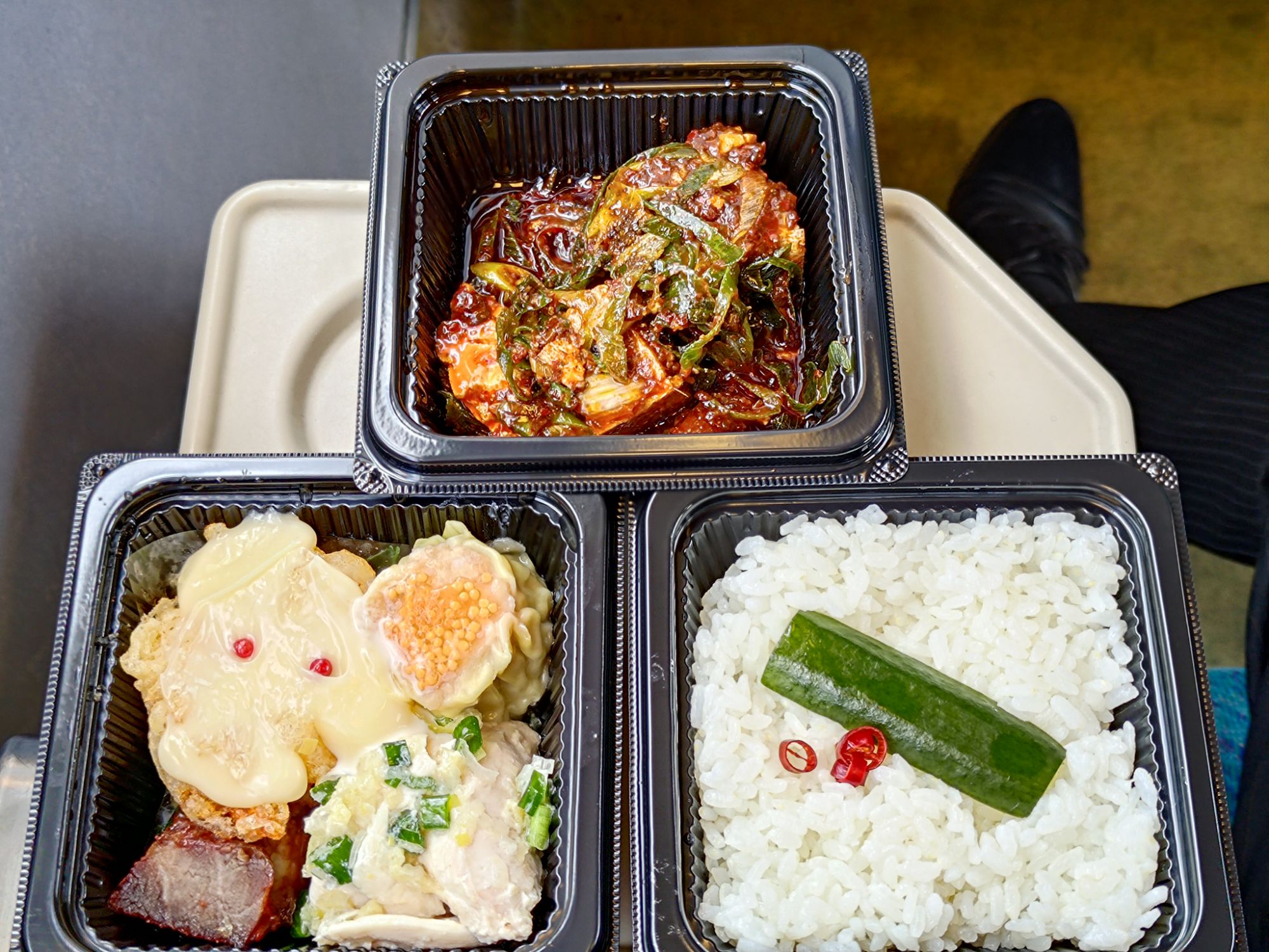 急いで買ったので電車に乗ってから気づきましたが、これ3段弁当!?