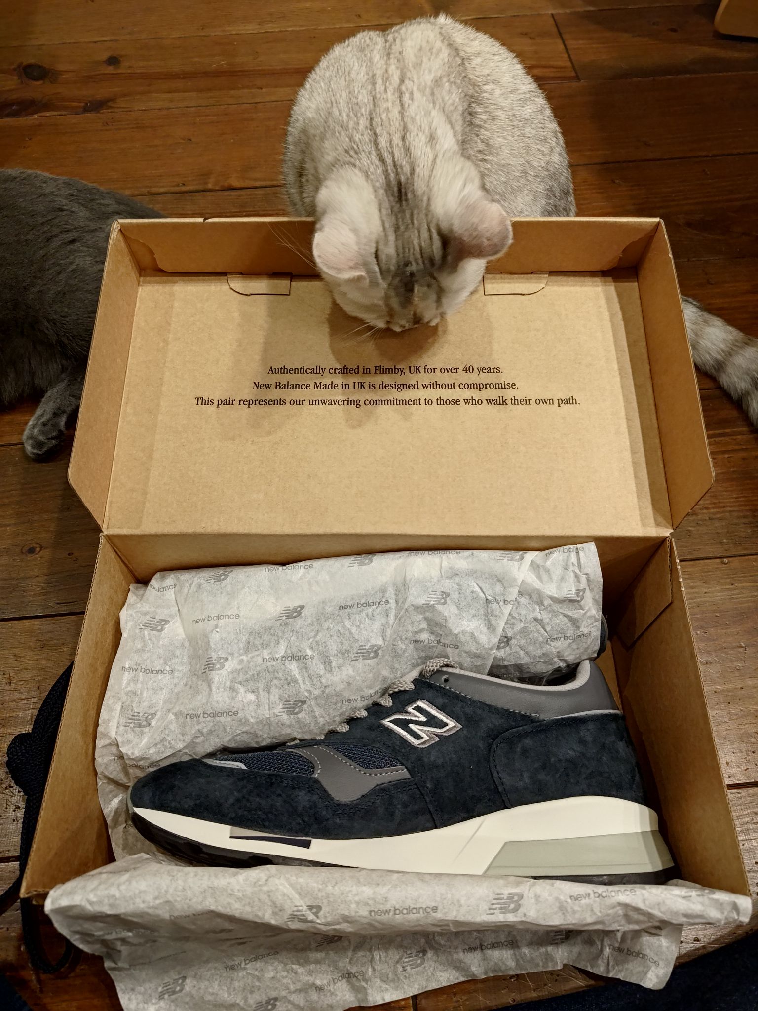 箱の内側にも「Authentically crafted in Flimby, UK for over 40 years.」「New Balance Made in UK is designed without compromise.」と書かれていて、職人の誇りを感じます。